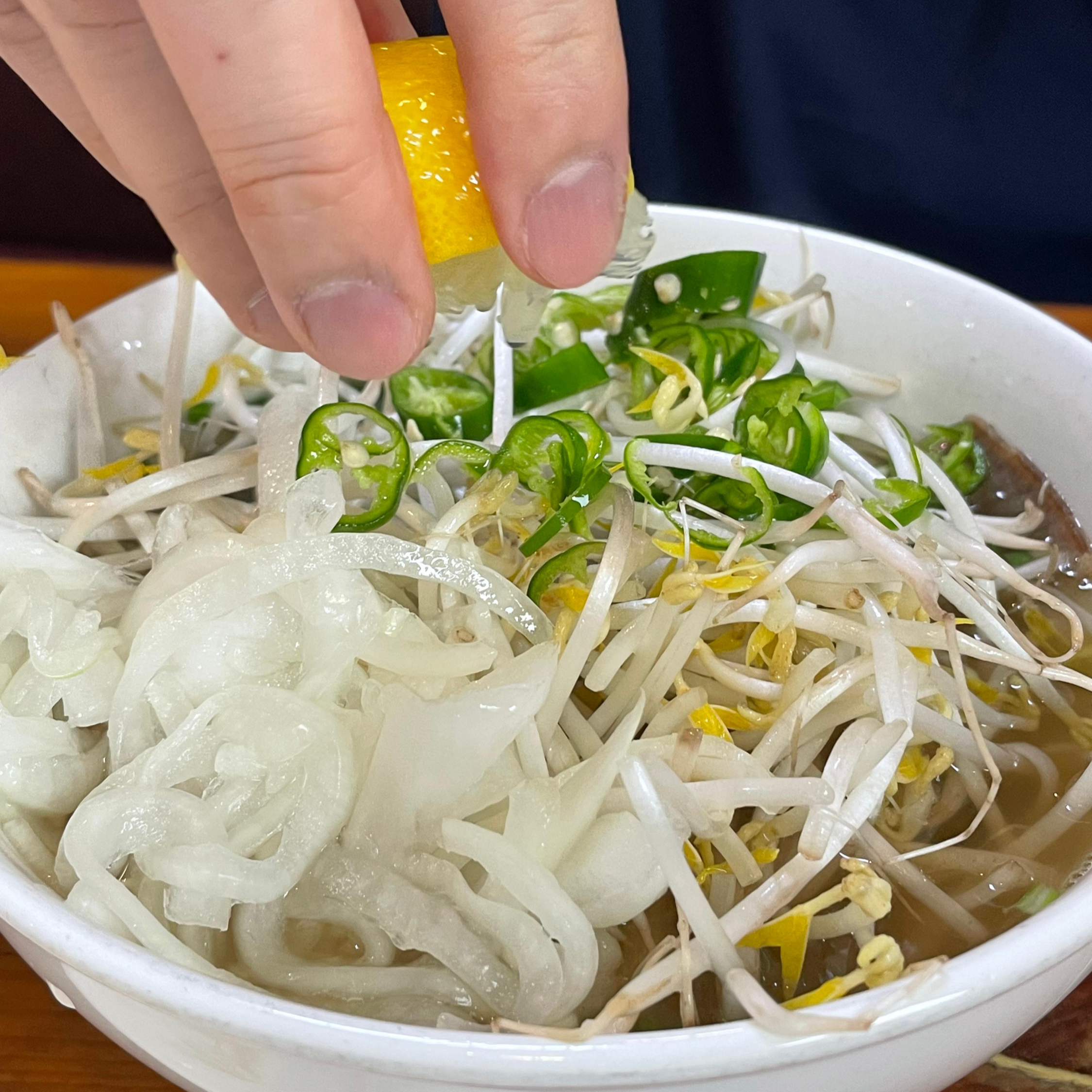 숙주, 매운 고추, 절임 양파, 레몬 별도 제공