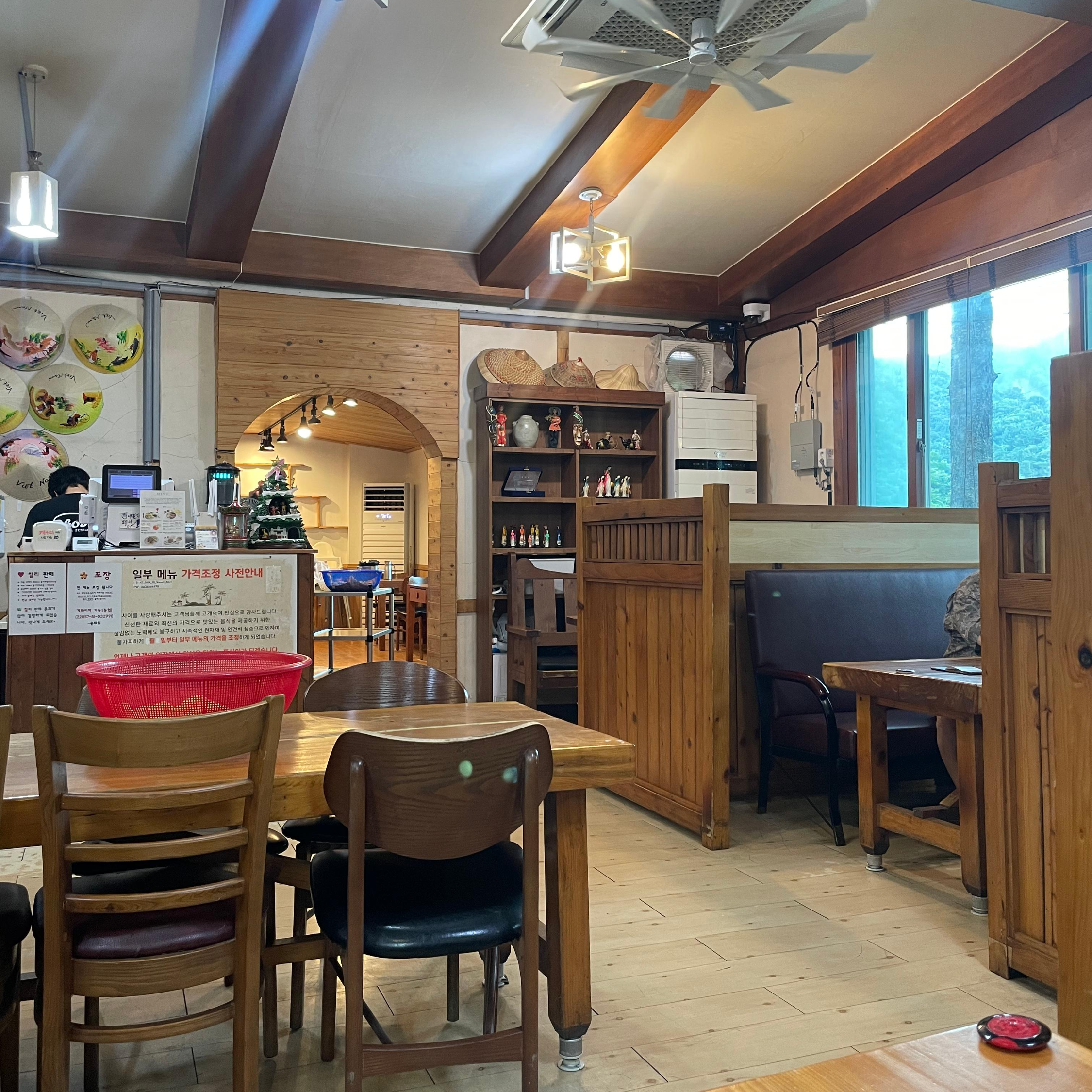 ✅ 분위기 : 한적한 숲속에 위치해 도심과는 다른 조용하고 시원한 힐링 공간, 가족 단위 또는 드라이브 겸 식사하기 좋은 구성